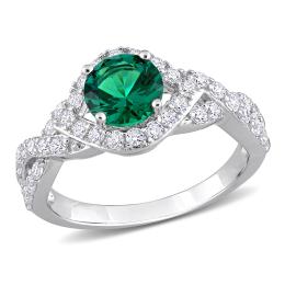 Julianna B Sterling Silver Green and White Cubic Zirconia Ring