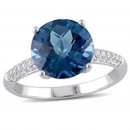 Julianna B 10K White Gold London Blue Topaz & 0.08CTW Diamond Ring