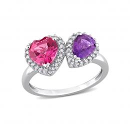 Julianna B 14K White Gold 0.20 CTW Diamond, Pink Topaz & Amethyst-Africa Ring