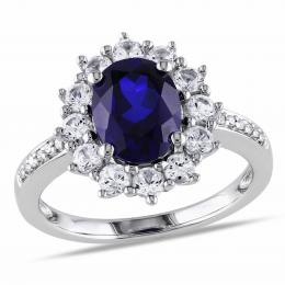 Julianna B Created Blue Sapphire & Created White Sapphire & 0.05CTW Diamond Ring