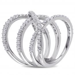 Julianna B Sterling Silver White Topaz Crossover Split Shank Ring