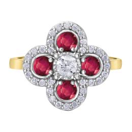 10K Yellow & White Gold Ruby and Canadian Diamond Cluster Ring