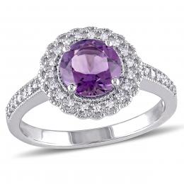 Julianna B Sterling Silver Diamond, Amethyst & Created White Sapphire Ring