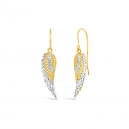 10K Yellow and White Gold Angel Wings Dangle Earrings