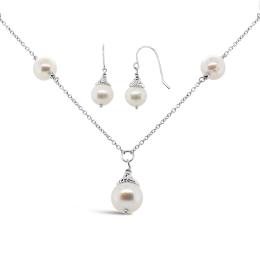 Sterling Silver Pearl Necklace and Earrings Set