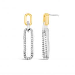 Sterling Silver & 10K Yellow Gold 0.18CTW Diamond Paperclip Earrings