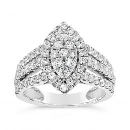10K White Gold Diamond Marquise Shaped Fashion Ring 1.50CTW I2/HIJ