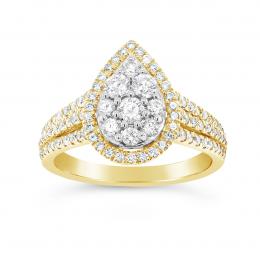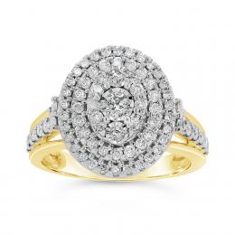 Diamond Revelations 14K Yellow Gold 0.99CTW Oval Diamond Halo Bridal Ring