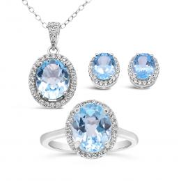 Sterling Silver Blue Topaz & Created White Sapphire 3 Piece Set