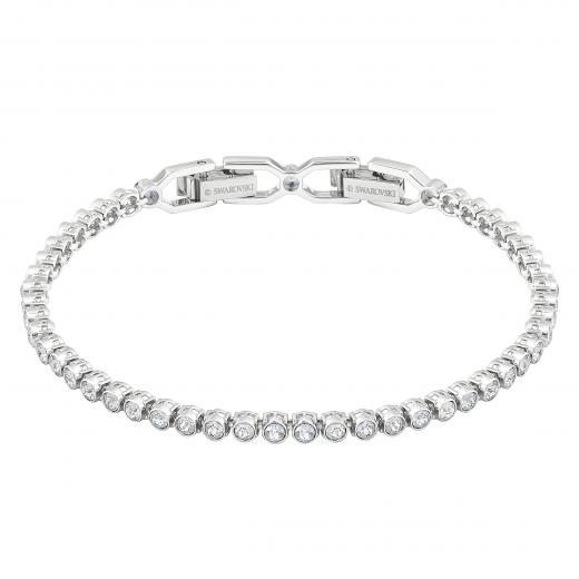 The Swarovski Emily Bracelet is a chic and sophisticated accessory that radiates elegance and refinement. Featuring a series of sparkling Swarovski crystals, this bracelet is designed to catch the light and add a touch of brilliance to any outfit. The crystals are set in a sleek, polished metal band, creating a timeless and versatile piece that can be worn alone for a subtle statement or stacked with other bracelets for added glamour.