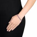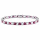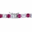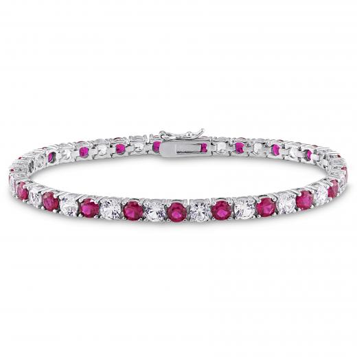 This alluring tennis bracelet features alternating round-cut created ruby and created white sapphires set in sterling silver. This marvelous piece is secured with a box-with-tongue clasp. A perfect choice for that special July birthday in your life.
