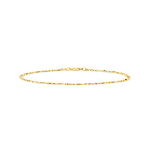 Classic charm meets lightweight luxury—this 10 karat yellow gold Figaro anklet is a golden accent designed for effortless style and comfort. Figaro link pattern with alternating short and long links for a timeless, elegant look.
