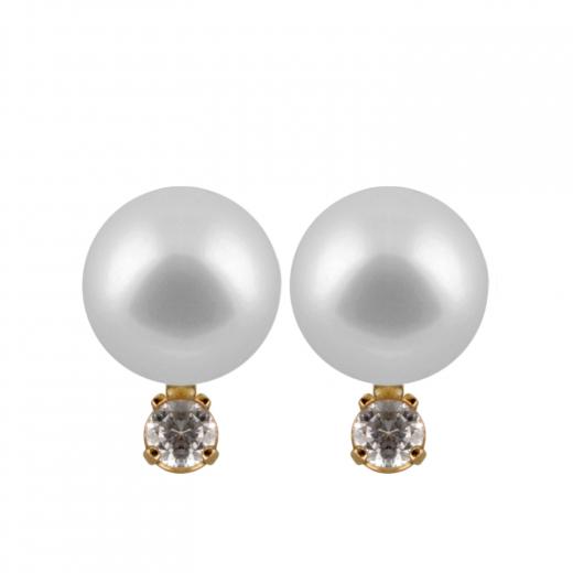 14k gold earrings with 7-7½mm Chinese cultured saltwater pearl and diamonds 0.10ct DTW.
