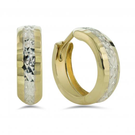 Add a touch of style to any look with these modern 10k gold hoops. Crafted in yellow gold and sparkling with a white gold diamond-cut centre for a splash of sparkle, these earrings are a perfect choice every time!