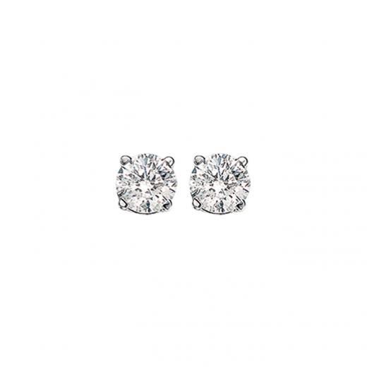 There is no more timeless a design than the classic diamond solitaire stud earrings. A 14kt white gold, four claw basket setting secure 0.33ctw of round brilliant cut diamonds. These earrings are secured with threaded posts and screw on backs. This ultra classic style can be worn day or night, with jeans or an evening gown.