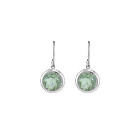 These classic green quartz drop design earrings are crafted in lustrous sterling silver. These bezel set green quartz gemstones will instantly add a touch of colour and sophistication to any ensemble. .