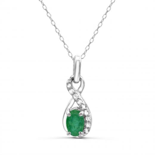 These modern yet classic, infinity design earrings are crafted in gleaming sterling silver and are sure to become a favourite item in your jewellery collection. This item is perfectly adorned with shimmering white topaz and two oval cut emerald, which is the birthstone for May. If you are looking for something stunning, order this for yourself or someone you love today!