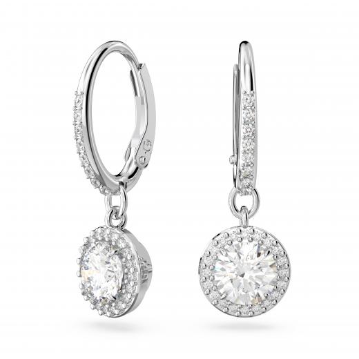 These earrings feature a sophisticated design, with multiple sparkling Swarovski crystals arranged to create a celestial-inspired look. The crystals are set in a way that captures and reflects light, offering a dazzling effect from every angle.