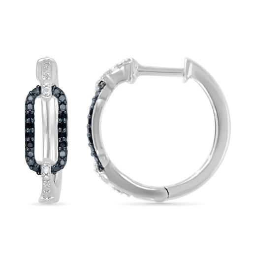 Elevate your style with these Sterling Silver Black Diamond Link Hoops. Crafted in sleek sterling silver, these hoop earrings feature a unique and edgy design with black diamonds. Their contemporary and elegant style adds a touch of intrigue and sophistication to your look, making them a versatile choice for those who want to make a statement and showcase their unique sense of fashion with a touch of luxury.