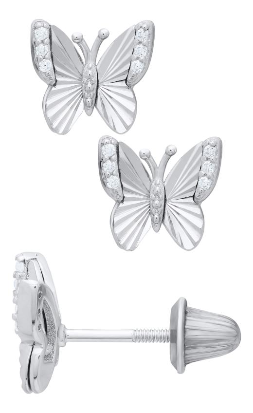 These sterling silver children's earrings feature adorable butterfly designs, accented with sparkling cubic zirconia. The delicate and colourful butterflies add a playful touch, making them a perfect accessory for young ones, adding a bit of charm and sparkle to any outfit.