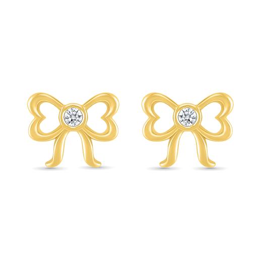 Add a touch of charm with these diamond bow stud earrings. The warm glow of yellow gold enhances the delicate bow design, while a sparkling diamond sits at the center, adding brilliance and elegance. A timeless accessory that brings a graceful touch to any look.
