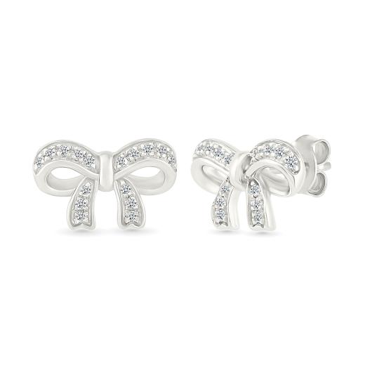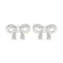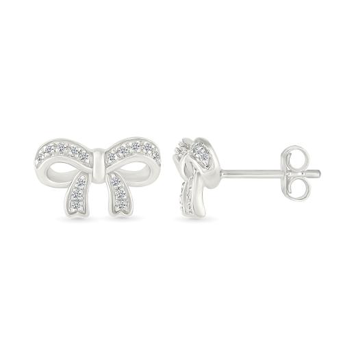 These diamond bow stud earrings in gleaming sterling silver bring a sweet and sophisticated touch to any style. Featuring a delicate bow design accented with shimmering diamonds, they offer just the right amount of sparkle. A timeless and charming accessory, perfect for everyday elegance or a heartfelt gift.