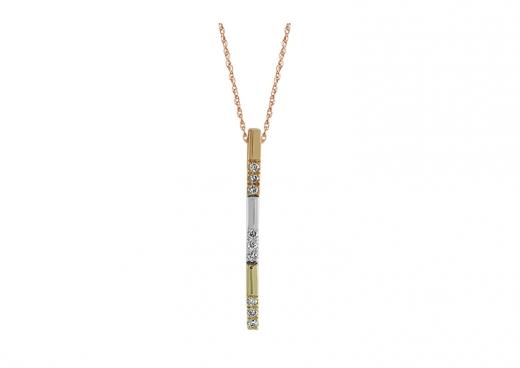 The tri-colour metal design adds depth and dimension, making this pendant an eye-catching accessory.