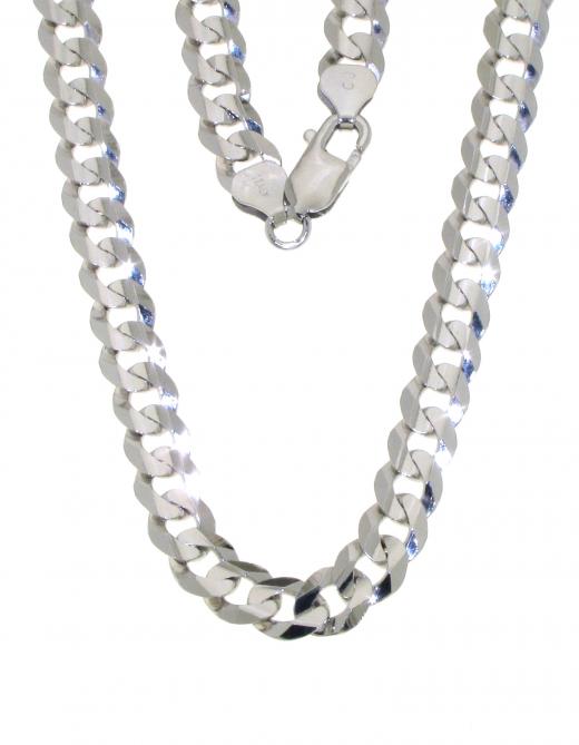 A Sterling Silver 24" 8mm Concave Curb Chain is a bold and substantial jewellery piece with a striking design. The curb chain style is characterized by its flattened, interlocking links that provide durability and a classic look.