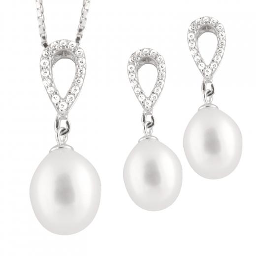 This elegant 2-piece silver set combines the timeless beauty of pearls with the sparkle of cubic zirconia. The delicate design features a pair of pearl earrings and a matching pendant, each adorned with shimmering cubic zirconia accents. A perfect choice for adding a touch of sophistication and charm to any occasion.