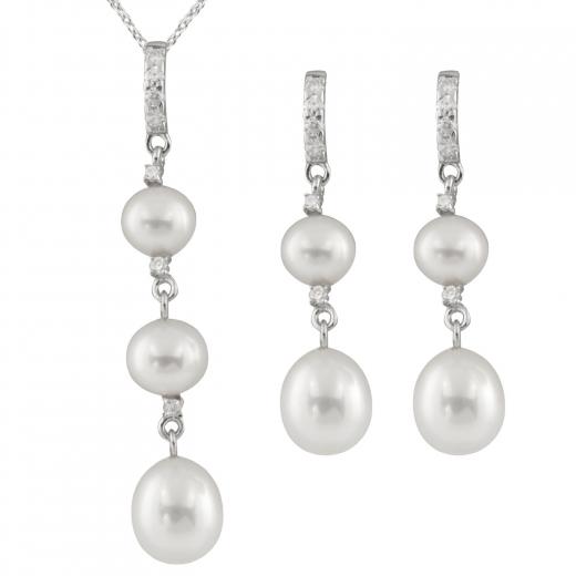 Fancy sterling silver drop pendant/chain and dangling earrings with cubic zirconia.