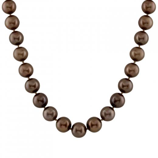 9-10mm chocolate freshwater pearl 18" necklace with 14k gold fisheye clasp.