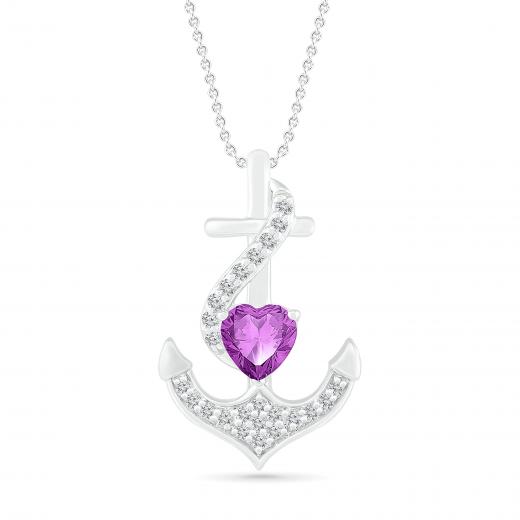 This stunning anchor necklace features an amethyst set in sterling silver with created white sapphire accents. Symbolizing strength and security, with a heart-shaped stone , makes it the perfect gift for your sweetheart. (18" sterling silver chain included)