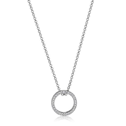 This necklace features a stunning open circle design with a sleek spherical accent, set in a chic two-tone metal combination. The contrast between the polished metal tones enhances the modern, minimalist aesthetic, making it a versatile piece that adds sophistication to any look.