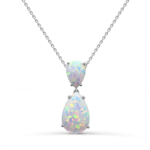 Express your love with this exquisite created opal drop pendant in sterling silver. This pendant features pear-cut created opal gemstones and is strung on a beautiful sterling silver chain. This is sure to become a favourite in anyone's jewellery collection.