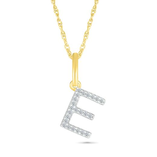 This charming pendant features a graceful "E" initial crafted from 10K yellow gold, accented with sparkling diamonds. The warm, rich tone of the gold combined with the brilliance of the diamonds makes it a perfect balance of elegance and personal style.