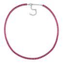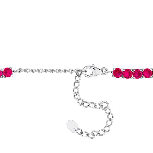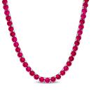 Revel in the alluring brilliance of this 17-inch Created Ruby Necklace, an embodiment of refined elegance and versatile charm. The centerpiece, boasting a captivating 30 carat total gem weight of created rubies, exudes a rich red hue that resonates with timeless beauty. Set against the backdrop of lustrous silver white, the necklace is secured by a classic lobster claw clasp, seamlessly blending sophistication and secure closure. Perfect for layering or making a statement on its own, this piece effortlessly enhances any ensemble. A gift as thoughtful as it is stylish, it captures the essence of both classic allure and contemporary fashion. Delicate yet impactful, this necklace speaks to your style, adding a touch of enduring beauty to every occasion. Embrace the versatility of this gemstone necklace, designed to effortlessly transition from day to night, resonating with the modern woman's grace and poise.