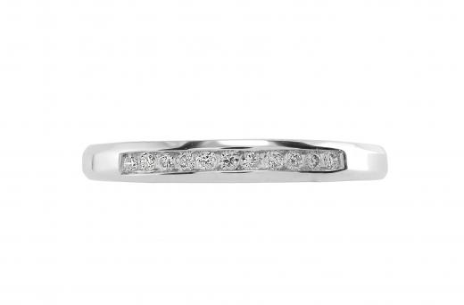 Refined elegance marks this classic 10k white gold wedding band, featuring a row of channel-set, round brilliant diamonds totaling .10-carat.