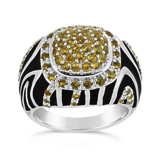 This striking ring showcases black enamel and round citrine gemstones in a sleek sterling silver band. Day or night - this ring will always complete your look!