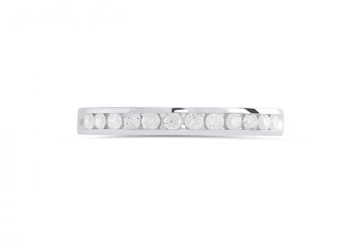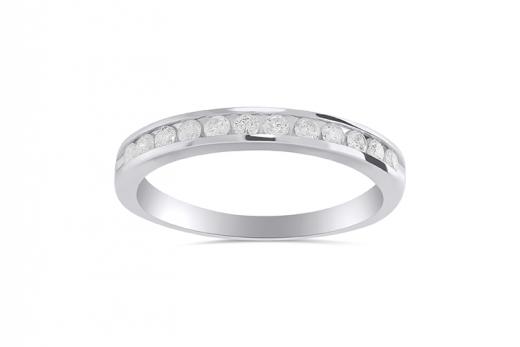 An elegant 10k white gold band lined with round diamonds is a beautiful statement of your love to one another.