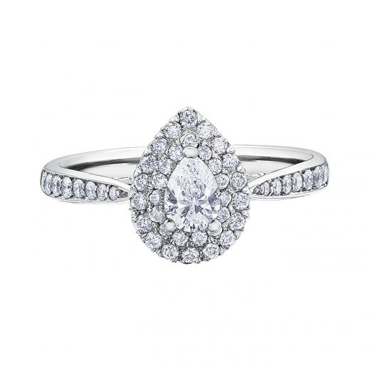 Let your love shine with this breathtaking .75ctw bridal ring from our exclusive Glacier Fire Canadian Diamond Collection. A double halo adds elegant sparkle to perfectly compliment the dazzling .30ct centre teardrop Canadian diamond. Additional diamonds set along the band complete this stunning bridal ring.