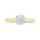 The 14K yellow gold setting complements the diamond perfectly, providing a warm and radiant backdrop that enhances its brilliance. The yellow gold band is sleek and polished, adding a touch of timeless elegance to the overall design.