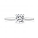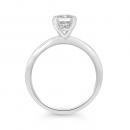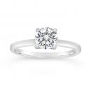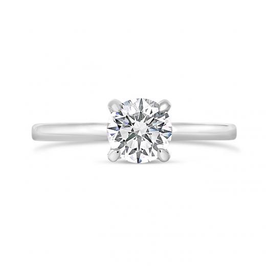 The most iconic of engagement ring styles, the solitaire symbolizes the connection and unity you share with the one you promise to love for an eternity. Featuring a round .96ct Glacier Fire Canadian Diamond set into a 14k white gold band sparkling with .04ctw of prong set diamonds, this ring shines bright, like your love.