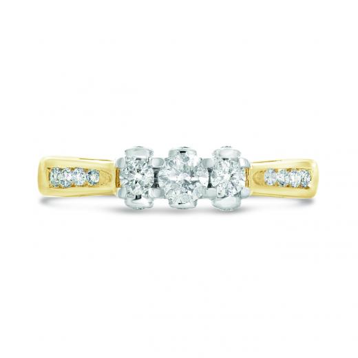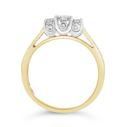 Indulge in the timeless allure of our exquisite 10K Yellow & White Gold Three-Stone Ring, a true testament to elegance and sophistication. Crafted with utmost precision and passion, this captivating piece showcases a harmonious fusion of lustrous yellow and white gold, evoking a dazzling contrast that catches the eye from every angle.