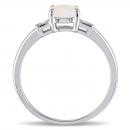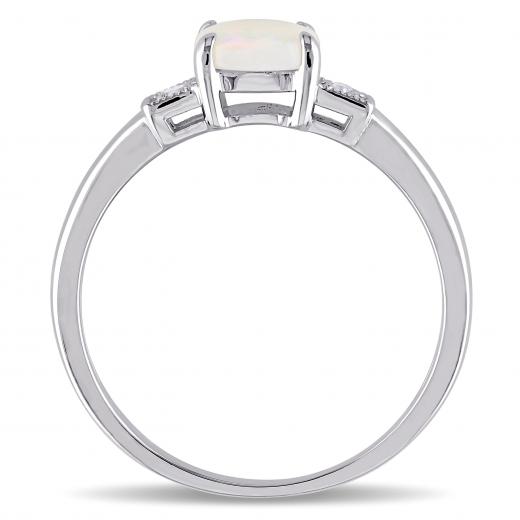 This pretty cocktail ring from the Collection features a cushion cabochon-cut opal center stone flanked by two round white diamonds. This gorgeous ring is set in sterling silver and is enhanced with a miligrain finish.