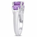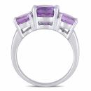 This beautiful three-stone ring from the Collection features three round-cut amethyst stones. This gorgeous ring is crafted of fine sterling silver and glimmers with a highly polished finish.