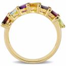 Stand out from the rest as you wear this beautiful Multi-Color Semi-Precious Gemstone Semi-Eternity Ring. Crafted in sparkling yellow rhodium-plated sterling silver, this ring features a marquise-cut, prong-set rhodolite, African-amethyst, sky blue topaz, citrine, rhodolite and peridot gemstone (6 x 3mm) elegantly arranged in a row. Enhanced with a high polish finish, this colorful gemstone ring is sure to give you a sophisticated look.
