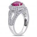 This stunning ring features a heart-cut created ruby center stone surrounded by created white sapphire side stones set in sterling silver. This lovely heart ring is enhanced with a high polish finish.