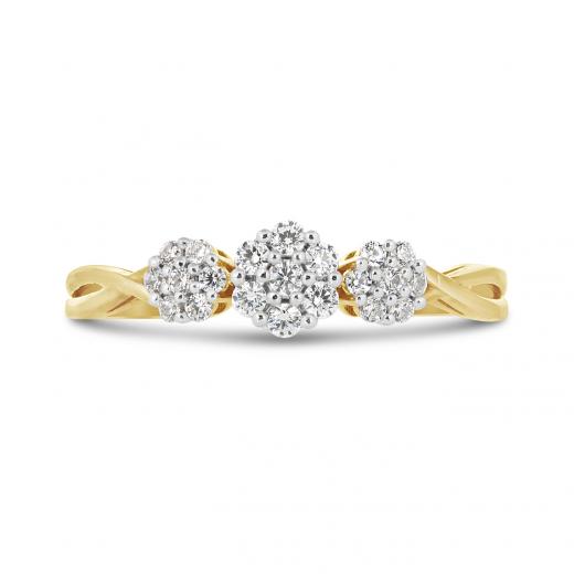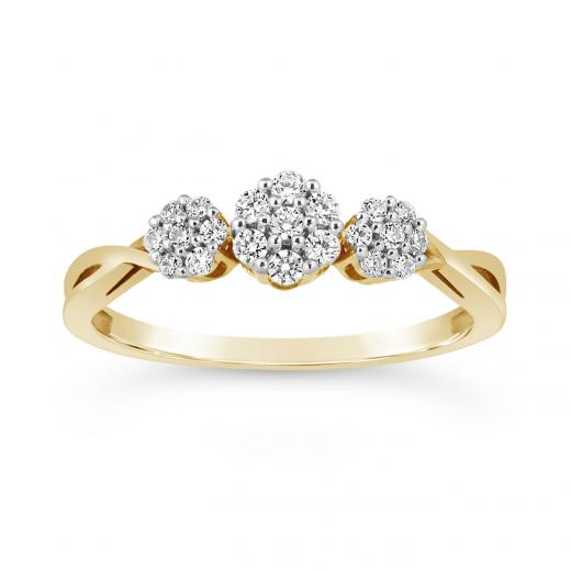 Whether worn as a standalone statement piece or paired with other rings, the 10K Yellow Gold 0.25CTW Diamond Three Cluster Ring exudes timeless beauty and elegance. It serves as a reflection of your unique style and a reminder of cherished moments filled with love and joy.