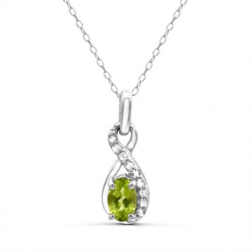 This modern yet classic, infinity design ring is crafted in gleaming sterling silver and is sure to become a favourite item in your jewellery collection. This item is perfectly adorned with shimmering white topaz and an oval cut peridot, which is the birthstone for August. If you are looking for something stunning, order this for yourself or someone you love today!