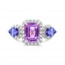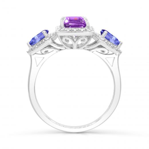 This fantastic cocktail ring is set with an octagon cut amethyst, pear cut tanzanite and shimmering round-cut diamonds. Crafted in cool, gleaming sterling silver, this ring will make you standout in any crowd!